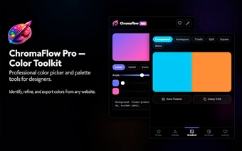 ChromaFlow Pro, web tasarımcıları ve geliştiriciler için kapsamlı bir renk araç setidir. Bu ücretsiz Chrome eklentisi, kullanıcıların renkleri seçmelerine, paletler oluşturmalarına, gradyanlar tasarlamalarına ve kontrastı kontrol etmelerine olanak tanır. HSL renk seçici, göz damlası aracı, palet oluşturucu ve WCAG uyumluluk denetleyicisi gibi özelliklerle donatılmıştır. Kullanıcı dostu arayüzü, tasarım sürecini hızlandırır ve erişilebilirlik standartlarını sağlamak için gerekli araçları sunar.